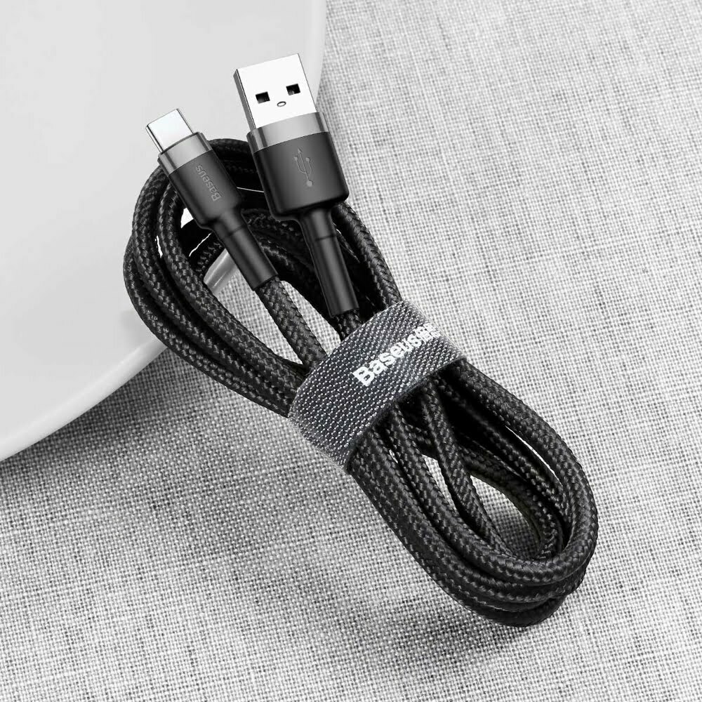 Baseus Cafule Cable Durable Nylon Braided Wire USB Type-C QC3.0 3A 1M black-grey CATKLF-BG1