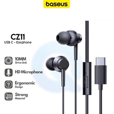 Baseus Earphone Type-c Experience the perfect blend of quality audio and stylish design with the Baseus Encok CZ11 wired earphones. Featuring a sophisticated design and advanced audio technology, these earphones deliver detailed and immersive sound for all music genres. The Type-C port ensures a stable and high-quality connection, making them compatible with a wide range of modern devices. Ergonomically designed for maximum comfort, these earphones are perfect for extended listening sessions. The built-in controls make managing music and calls effortless, while the premium materials guarantee long-term durability. Enjoy your music and calls with the Baseus Encok CZ11 wired earphones.