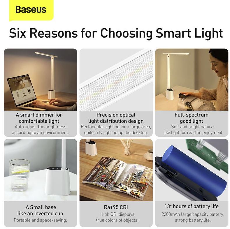- Name: Baseus Smart Eye Series Rechargeable Folding Reading Desk Lamp (Smart Light)
