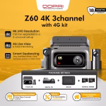DDPAi Dash Camera Z60 4K 3 Channel With 4G Parking Kit 32GB Built in Memory & 128GB Memory – 18 Months Warranty