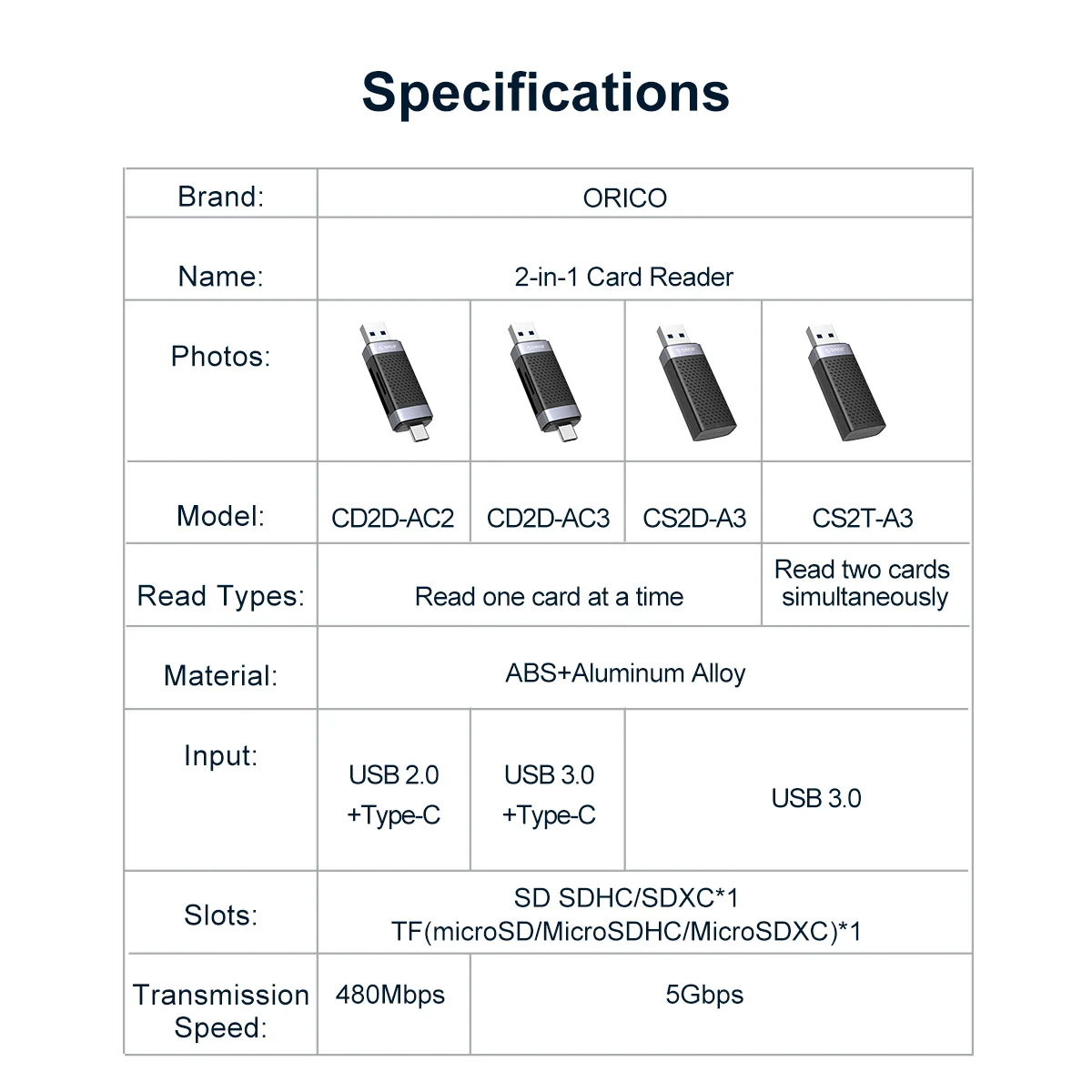 Buy ORICO Card Reader 2in1 SD Tf USB 3.0 USB-A & Type-C CD2D-AC3 From gadgetz.com.bd. Official Orico Online Store In Bangladesh .