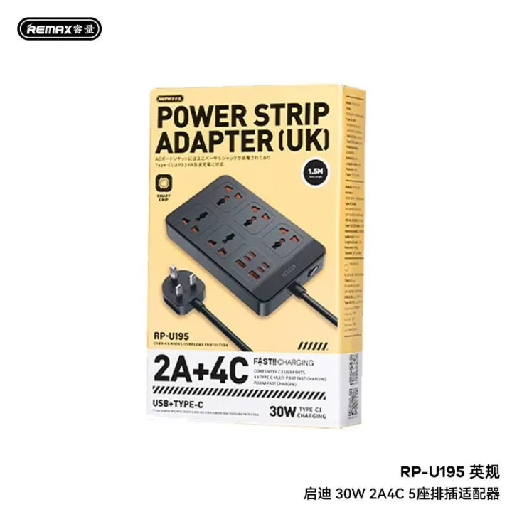 The REMAX RP-U195 Power Strip 30W Fast Charging Hub is designed for users who want a reliable and efficient solution for powering multiple devices at once. It combines the functionality of a traditional power strip with the convenience of a fast charging hub, making it ideal for homes, offices, study desks, and travel setups. Because modern users rely on several digital devices, this hub offers both AC sockets and USB ports to meet all charging needs in one place.