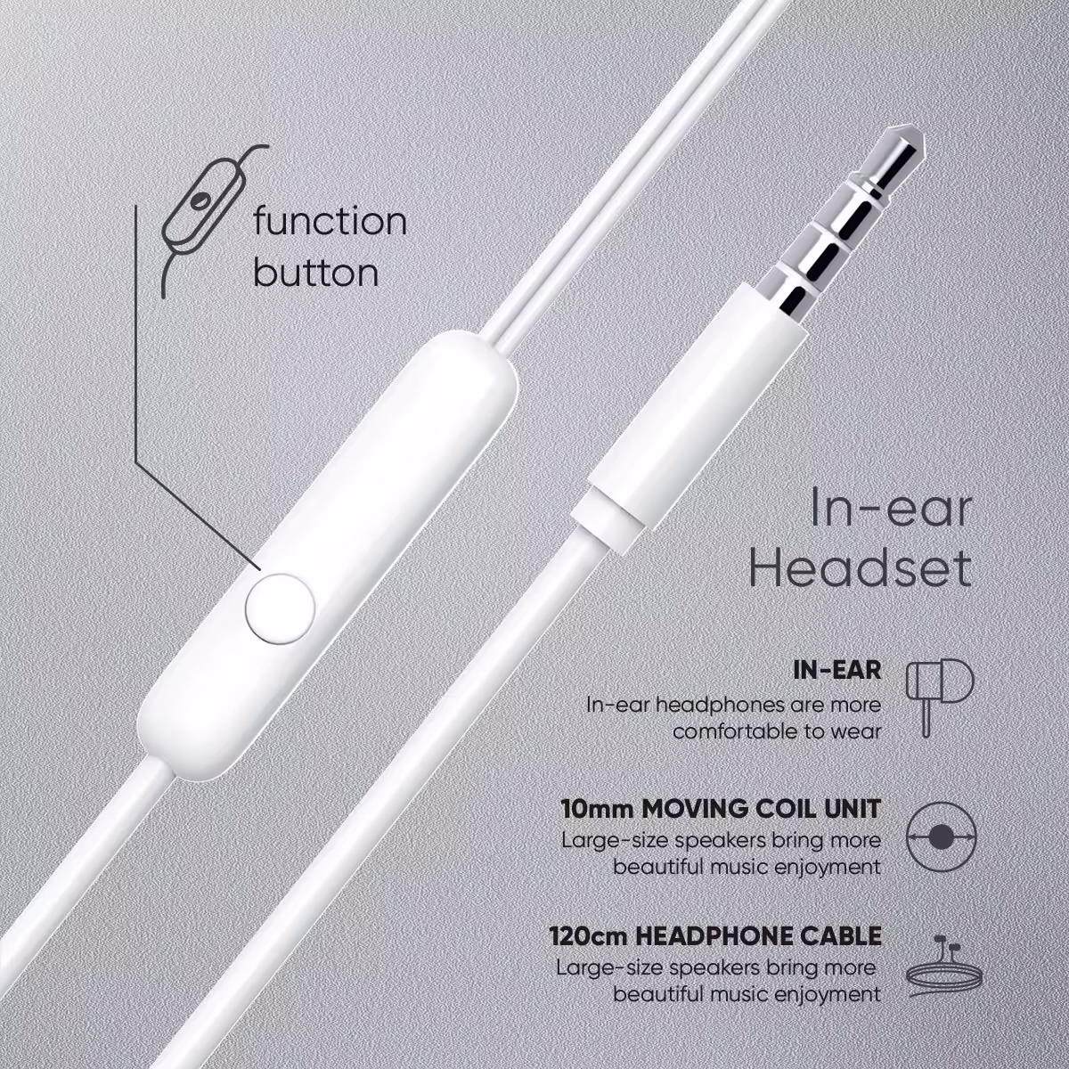 VIDVIE HS653 In-Ear 3.5MM Wired Earphone White -3 Months Warranty